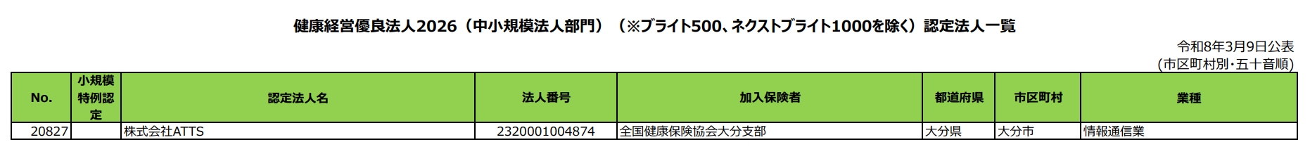 健康経営優良法人登録一覧